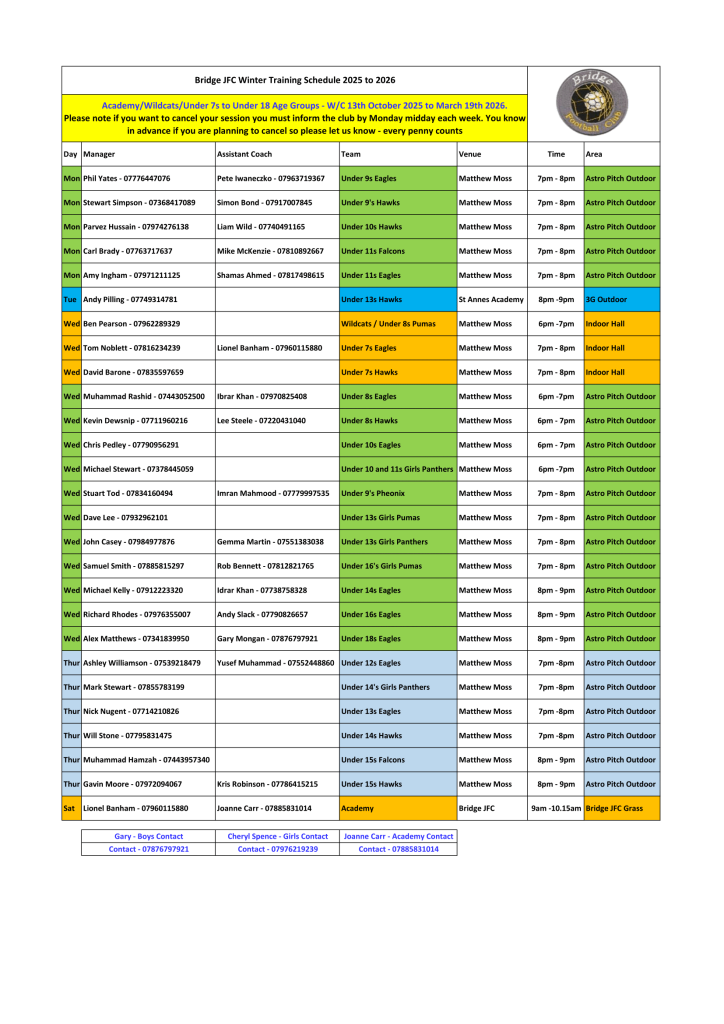 Manager: Phil Yates 07776447076
